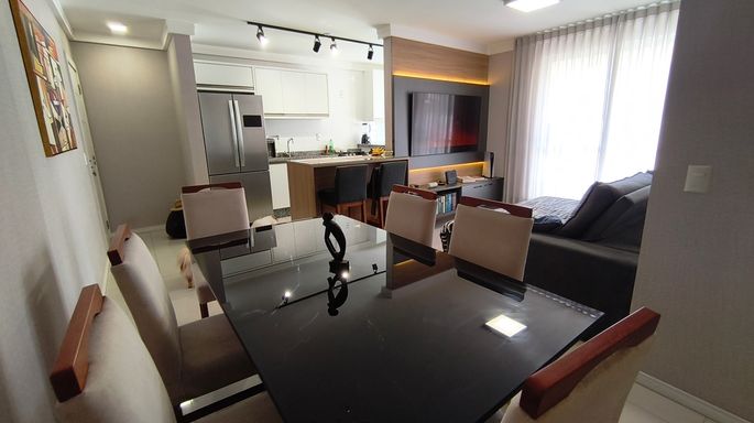 Apartamento de alto padrão no centro de Palhoça - SC Para morar com conforto, segurança, próximo de tudo comercio, e ainda desfrutar de de lazer, esportes, descanso com vista para o mar, essa opção irá satisfazer todas as suas necessidades. O apartamento possui dois quartos, sendo uma suíte e duas Demi-suítes, sacada com espaço gourmet e churrasqueira, vaga de garagem coberta, acabamento de primeira qualidade, piso porcelanato em todos os ambientes, persianas integradas, rebaixamento em gesso, isolamento acústico entre paredes e lajes, tubulação de água quente, móveis planejados e demais inclusos, ou seja, 100% mobiliado. O condomínio possui: - 2 Elevadores, salão de festas, espaço fitness, playground, espaço Pet, espaço zen, sala de massagem, spa, quadra poliesportiva, sala de jogos, sauna, portaria 24 horas. Oportunidade de ocasião, com acessibilidade as principais vias e rodovias, esse é um imóvel para toda família. Agende uma visita e venha conferir todos esses benefícios, watts 48 9927-4545