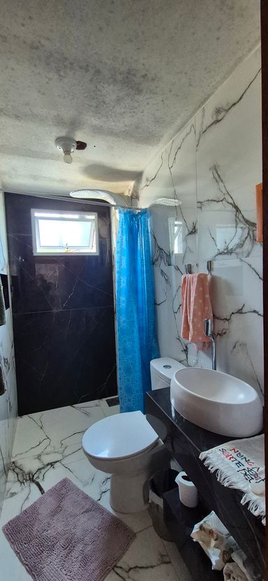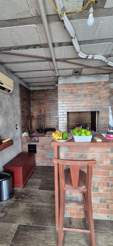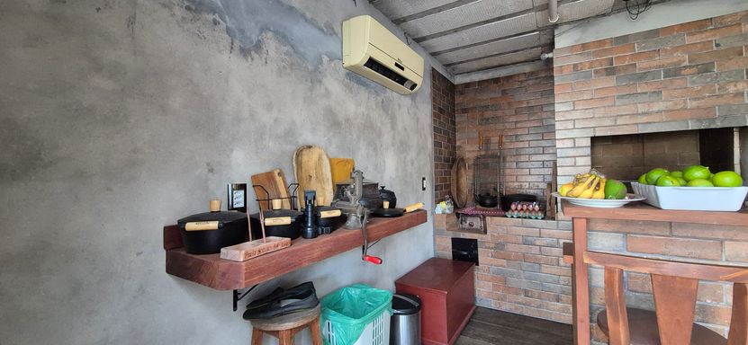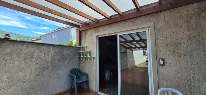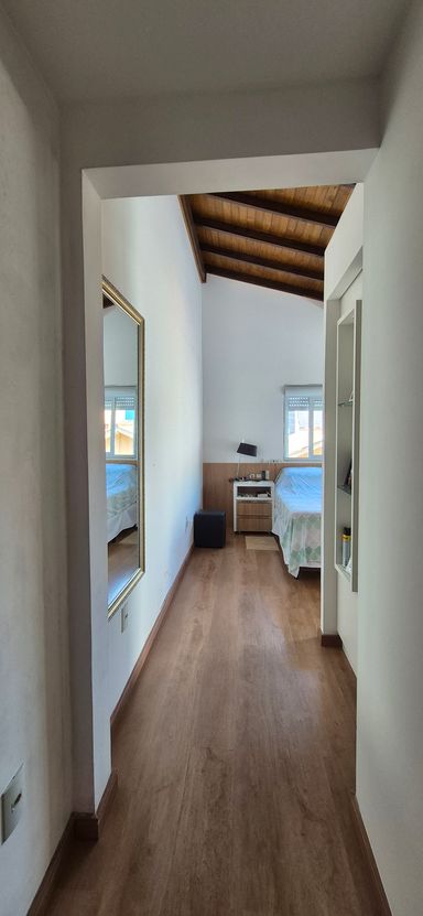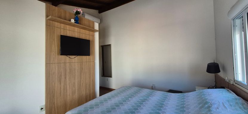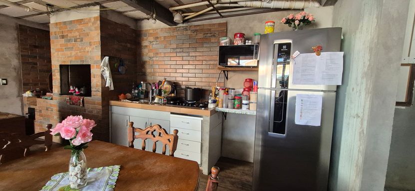 Casa com 140 m2 , duas suítes no piso superior, cozinha ampla com churrasqueira e fogão a lenha , sala de jantar e ampla sala de estar. Os quartos são ensolarados e com vista para o morro.
