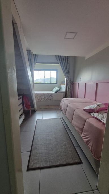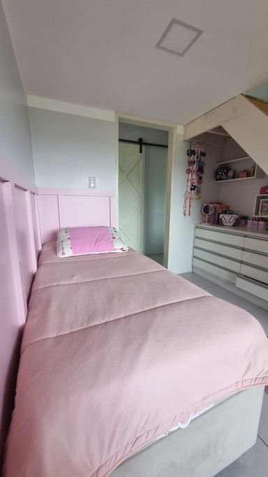 Com 2 quartos sendo uma suíte, sala, cozinha, banheiro social
