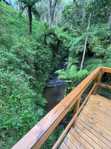 Deck de acesso ao riacho, iluminação externa de led.