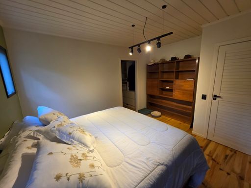 Sala de estar espaçosa, mais uma varanda com vista para o vale e montanhas. Cozinha completa com móveis de excelente qualidade e bom gosto.