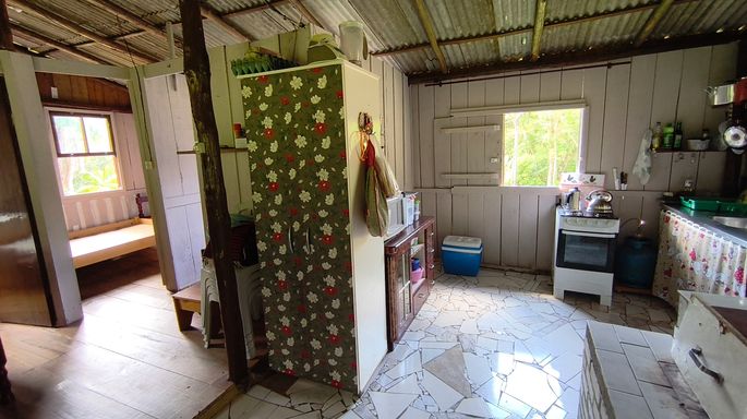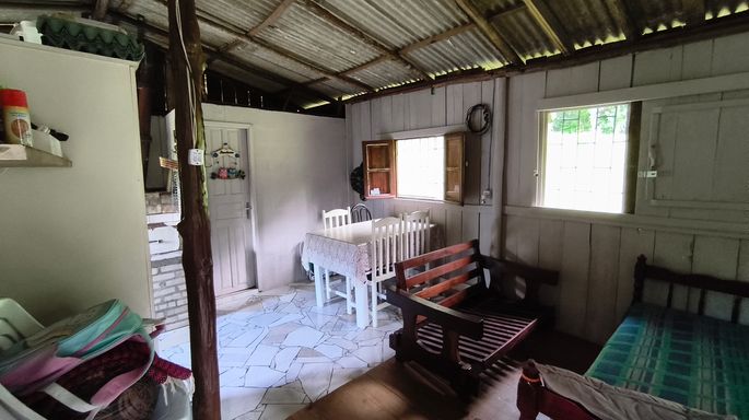 A chácara à venda é totalmente aproveitável e já possui casa simples e funcional, com 3 quartos, varanda, ideal para moradia imediata ou apoio enquanto realiza melhorias. A propriedade ainda dispõe de galinheiro e rancho para ferramentas, facilitando o dia a dia no campo. Tem pronto um chão de casa grande.