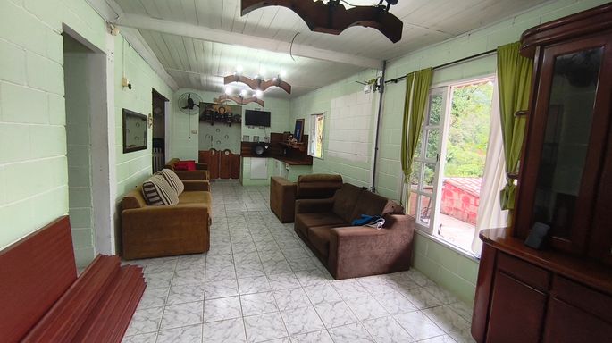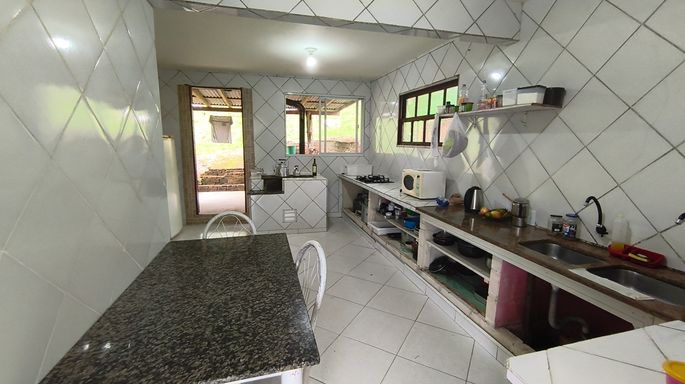 A área construída é completa e muito bem distribuída. Conta com casa principal, casa de apoio com três camas e banheiro, além de um chalé rústico, ideal para hóspedes ou locação. O imóvel dispõe ainda de um salão de festas com dois banheiros e uma agradável área de festas com piscina e churrasqueira, perfeita para confraternizações e momentos de lazer.