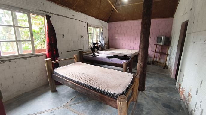 Casa de apoio com 3 camas e banheiro