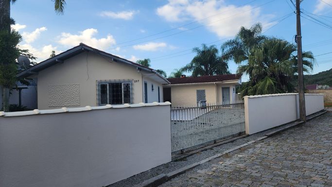 casa térrea com dois quartos, banheiro, cozinha e sala ampla com escritura